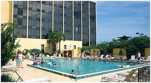 Poolside Cabana Bar - Snacks, beer, soft drinks, and frozen cocktails by the pool. Open seasonally from late morning until early evening. Amenities:Guests can cool down in the hotel’s outdoor splash pool or relax in one of two spa tubs. A tennis court and basketball half-court are also on site; complimentary equipment is available. A game arcade is located off the lobby.